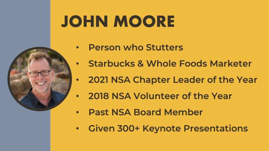 John is a marketing consultant and person who stutters. He leads a stuttering community group in Greenville, SC. and is a past board member of the National Stuttering Association.